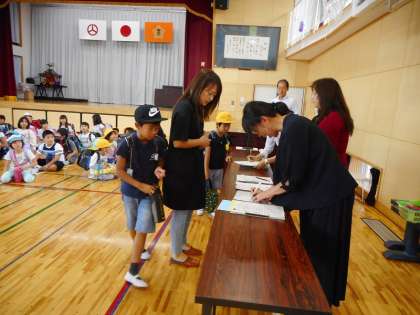 洪水、地震と災害が続いておりますが、今年も自然災害から子供達を安全に下校させるために、引きわたし訓練を行いました。引きわたしカードで、おうちの方と児童のみなさんが安全に下校できるよう、ご協力よろしくお願いします。