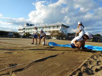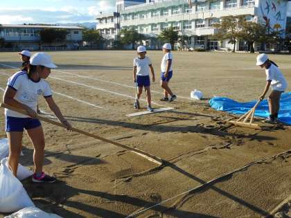 基本動作トレーニングをしっかり行い。種目別練習を行った特設陸上部。5・6年生の選手の皆さんに集中してやってもらおうと4年生は、一生懸命補助の仕事に徹しています。4年生の皆さん、ありがとうございます。