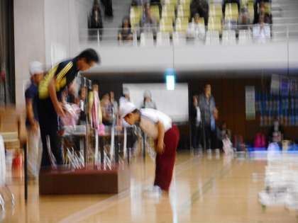 9月20日、合同体育祭が開催されました。開会式では、昨年の優勝トロフィーを白組代表で1年の鈴木君が返還しました。大きな返事に、きちんと礼をして立派なトロフィー返還となりました。