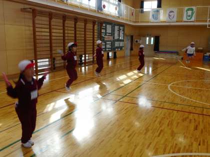 昨日うっすらと積もった雪が残っており、今朝もこまかい風花が舞っていました。肌をさすような寒さでしたが、体育館に1・2年生が元気に集まってきました。単純運動(走る&ジャンプ)系の運動で身体を温め、持久走なわとびの記録をのばしていました。寒さなんかふっ飛びました。