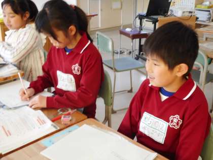 分数の意味や表し方について理解できるようになってきた3年生。4分の3mを見つけるために、今まで学習してきたことをつかって意見を出し合いました。分数は、単位分数の幾つ分か、で表せることを知り、いろいろな計算に使えるぞと思った3年生でした。