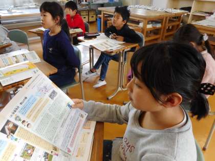 3年生は、郡山市の特産物の学習をしました。安子島の特産物「なし」や「お米」、ブランド野菜をはじめ、たくさんの美味しい食べ物がありました。昨年、すくすく水田で活躍した「郡山の鯉」もその一つ。正月料理でも親しまれている栄養満点の「鯉の甘煮」の話で盛り上がりました。
