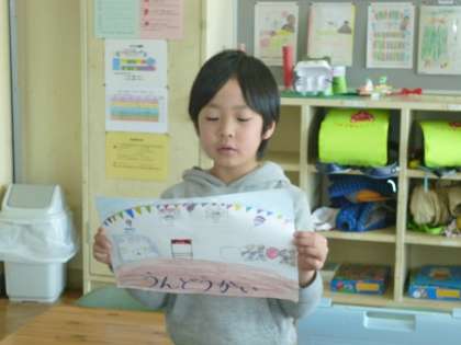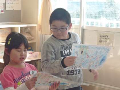 1年生が安子島小学校のおもな行事を絵をかいて紹介しました。たくさんの楽しい行事があることを新入生にわかりやすく伝えてくれました。