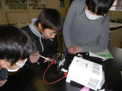 太さのちがう2本の電熱線で発熱の違いを実験した6年生。発泡スチロールが切れるまでの時間を調べました。電熱線の太さによって発熱のちがいがわかった6年生。身近なドライヤー ・ホットプレート ・電気ヒーター の太さを調べたくなりました。