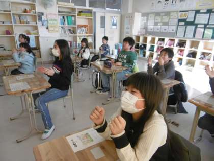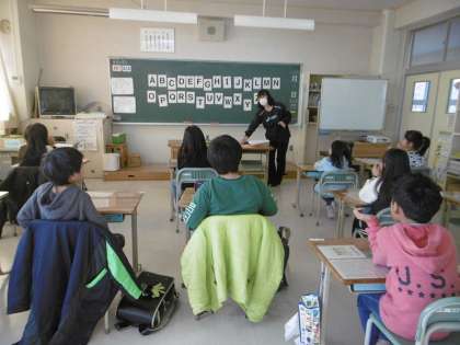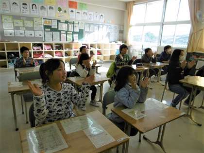 国語の学習でローマ字を学んだ3・4年生。アルファベットの大文字をリズムに合わせて発音しました。アルファベットとローマ字の音やひらがなとの数について比べて、アルファベットの特徴も知ることができました。この英語の楽しさが、次の学年の書く活動にもつながっていきそうです。