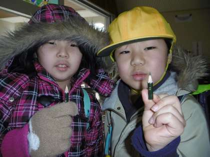 「宿題を毎日まじめにやったら、こんなに短くなりました」と、報告する1年生。「千里の道も一歩から」、継続は力なりです。