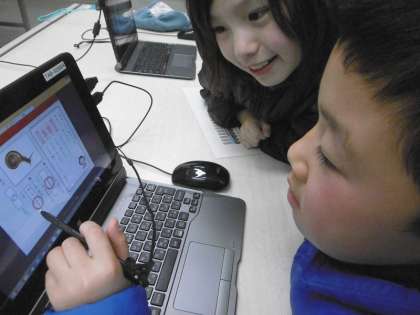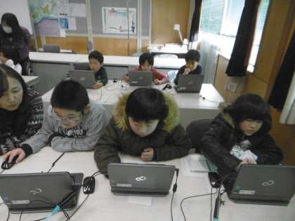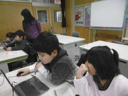ジャストスマイルを使って、「ひらがな」「漢字」「ことば」の学習の確認をした1・2年生。自分のペースにあわせて、どんどん進んでいきました。