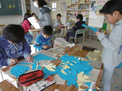 3・4年生は、季節の行事にあわせた掲示物を作成中。3グループに分かれて作業開始。体育館に掲示予定。できあがりが楽しみです。