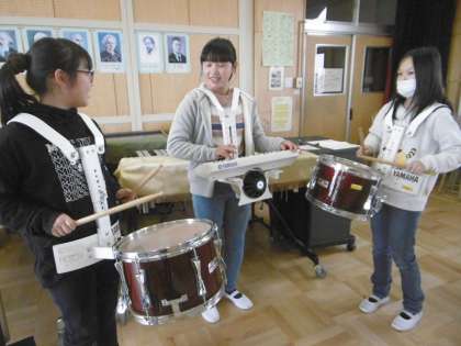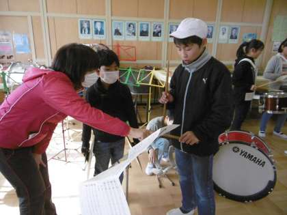 6年生の指導のもと、5年生が鼓笛の自主練習です。指揮のリズムを刻みながらの演奏は、まだまだ練習が必要ですが、一生けん命がんばっています。