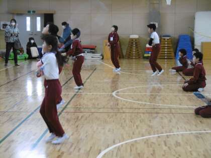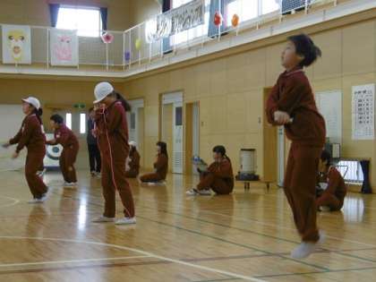 3・4年生は、前交差跳び、前交差跳び、前二重跳びに挑戦です。前あや跳び49回、前交差跳び95回、前二重跳び51回の記録を出した児童に、自己ベストの児童に、記録は出なかったものの一生けん命頑張った3・4年生に、大きな拍手がおくられました。