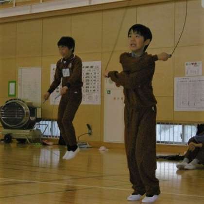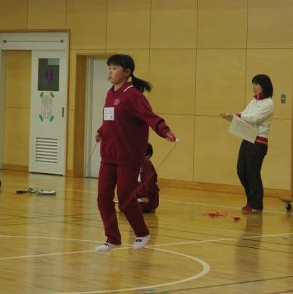 6年生は、前二重跳び、後ろあや跳び、後ろはやぶさに挑戦。3人ともベストをつくし、力を出しきり完全燃焼。1〜5年生に模範を示してくれました。6年生の演技に大きな拍手があがりました。