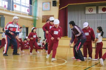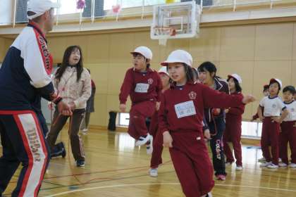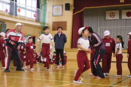 長縄跳び100回を目標にしていた1・2年生。本番まで記録をのばし、148回まで跳べるようになりました。3・4年生、5・6年生、お家の方々の声援を受け、真剣です。目標にした150回には惜しくも届かず147回でしたが、新記録にせまる大記録でした。