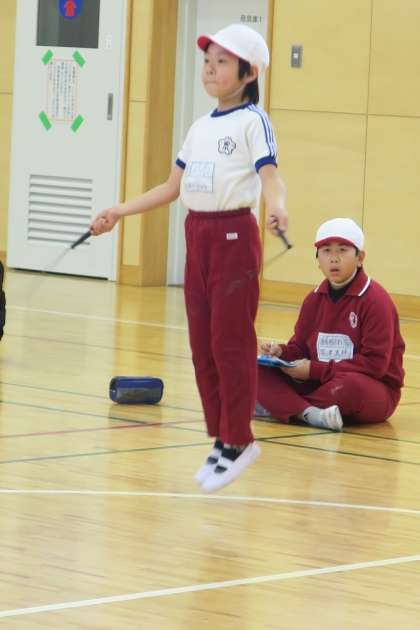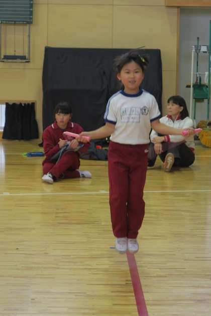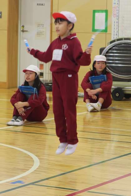 これまでの練習の成果をなわとび記録会で発揮した1年生。当日は持久跳び1分間に4人の合格者がでました。毎朝の練習、業間での練習、家庭での自主練習の努力があらわれました。