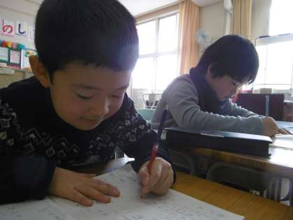 「あったらいいな」と思うものを考えた2年生。聞く人がよくわかるように発表しようと、話のじゅんじょを考えて、つなぎのことばを入れました。わかりやすくするために絵やイラストも描いてみました。