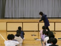 昼休みに上級生が鼓笛の練習をしている間、1・2年生は体育館で体育専門アドバイザーの水野先生とボールを使った鬼ごっこをしました。水野先生の動きについていこうと大喜びで走り回る1・2年生。とても楽しくて時間を忘れるほどでした。