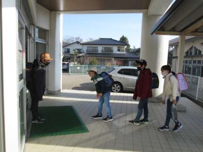 今日も子どもたちが全員元気に登校できました。通学路には、今日も保護者の皆様と交通安全母の会の皆様が子どもたちの安全を見守ってくださいました。