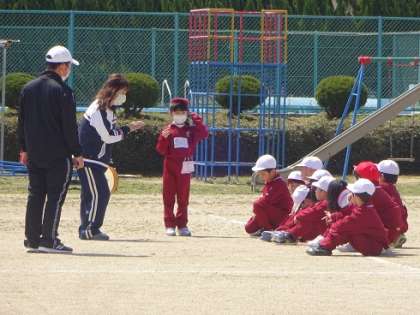 1・2年生が合同で体育を行いました。1年生もピカピカの運動着に袖を通し、元気に校庭に飛び出してきました。じゃんけんで勝ち進みながら、校庭を走るゲームでは、1・2年生が入り乱れて、楽しそうに走る姿が見られました。すっかり仲良しになれたようです。整列する姿もしっかりとしていました。
