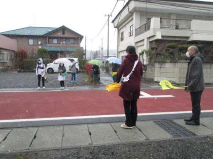 子どもたちの登校時間に合わせたように、急に冷たいみぞれが吹き付けました。傘を持ちながらも、上手に登校することができました。地域の皆様、交通安全母の会の皆様、見守りをしていただき、ありがとうございました。