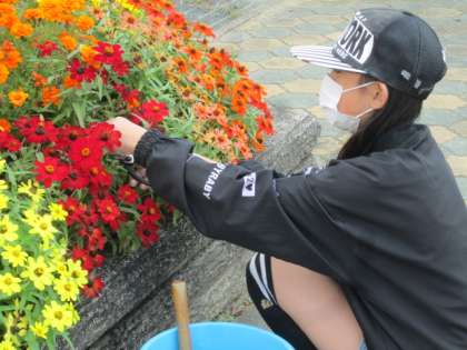 6年生の女子です。お花が大好きです。園芸ばさみを器用に使って、学校園のジニアの花殻を摘んでくれています。とても助かります。
