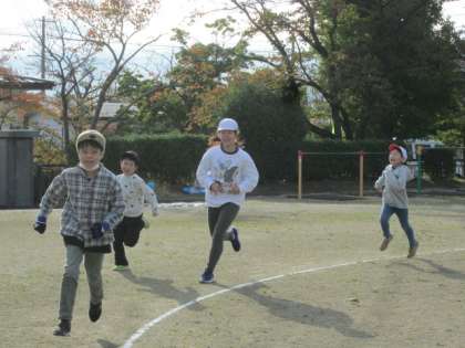 少しずつ桜の葉が色づき始めました。寒い朝でしたが、元気に子どもたちが登校してきました。マラソンも元気に行いました。