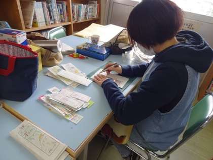 昨日は、学校司書の本田先生の来校日でした。しおりコンテストの結果が出たようです。水曜日の全校集会で発表です。一人一人の作品がしおりになるように作成してくださっていました。