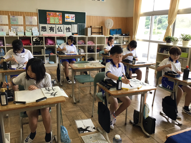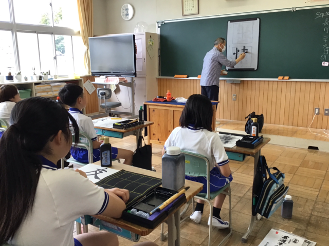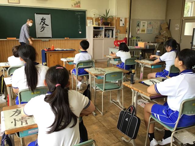 6年生の書写教室の様子です。1文字1文字心込めて、丁寧に書き上げていました。