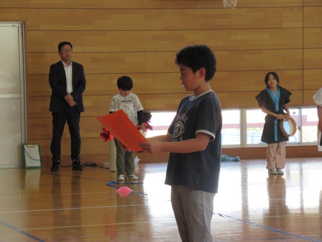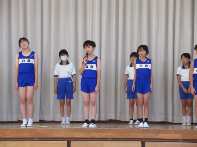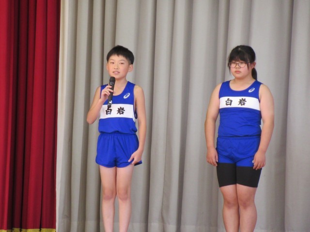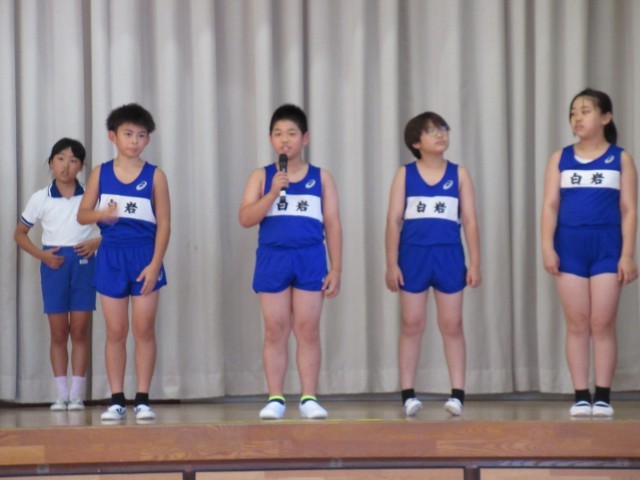 来週に控えた陸上交歓会に向けて、選手壮行会を行いました。壇上で選手一人一人が目標や意気込みを発表した後、1~4年生による元気あふれる応援を届けました。練習の成果が発揮できるよう頑張ってほしいと思います。