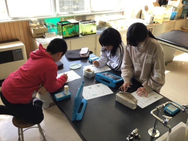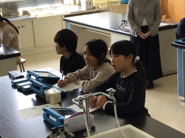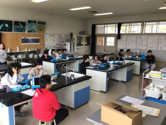 岩手、東京と本校の3ヶ所オンラインで繋ぎ、放射線に関する出前授業を実施しました。放射線測定器を用い、教室内や屋外の線量そして、御影石や塩などの線量を計ることにより放射線への理解を深めることができました。