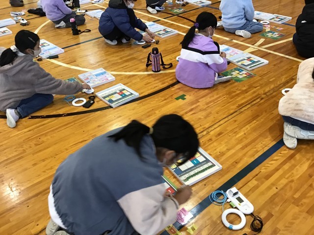 4、5年生を対象に福島トヨタの方を講師に迎え、トヨタ未来スクールを実施しました。様々な条件をクリアできるようプログラミングに試行錯誤していました。