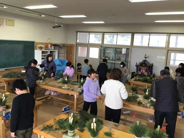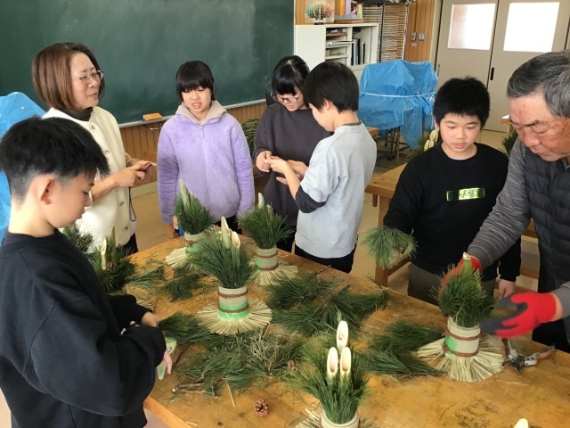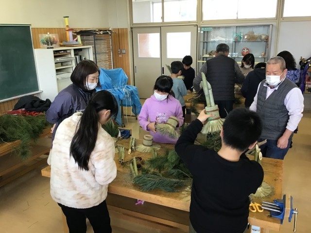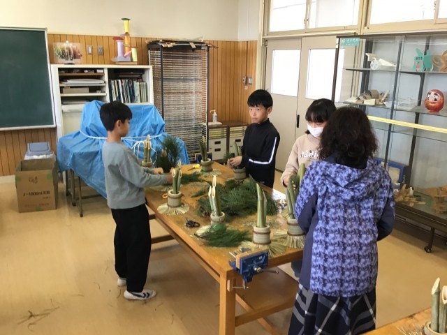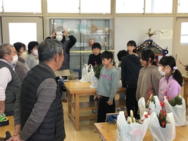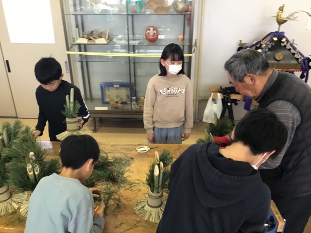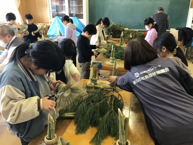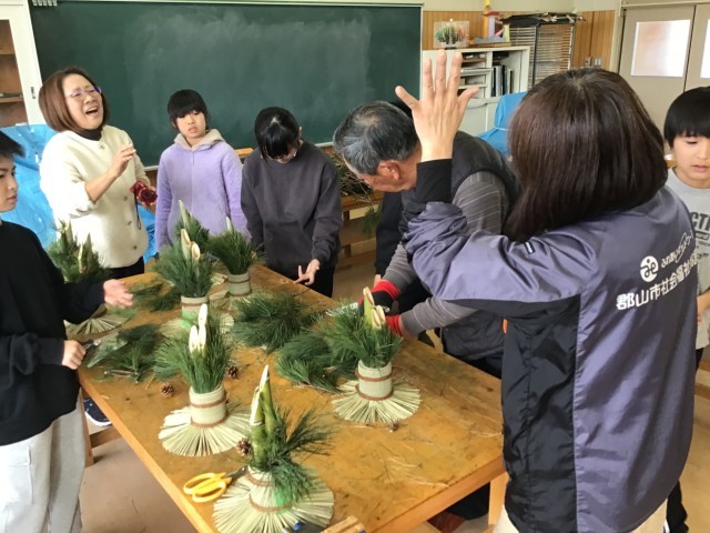 郡山市社会福祉協議会東部支部、民生児童委員の皆さまのご協力により世代間交流会として、ミニ門松づくりを行いました。講師の皆さまからご指導いただき、立派な門松を完成させることができました。正月には門松を飾って、気持ちも新たに新年を迎えたいと思います。