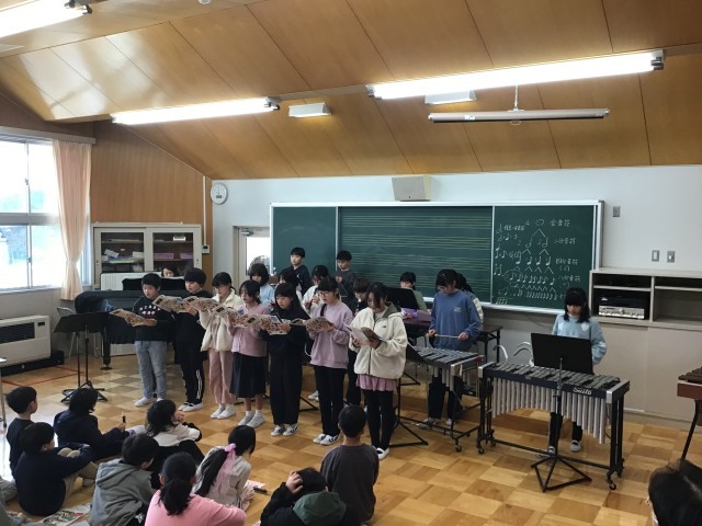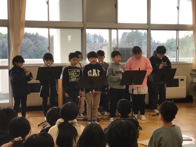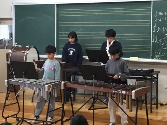 3、4、5、6年生合同の音楽発表会がありました。今学期のまとめとして、学習の成果を学年ごとに発表しました歌や合奏に心を合わせて立派に発表することができました。観賞していた1、2年生楽しいんを過ごすと共に、上級生の演奏に聴き入っていました。