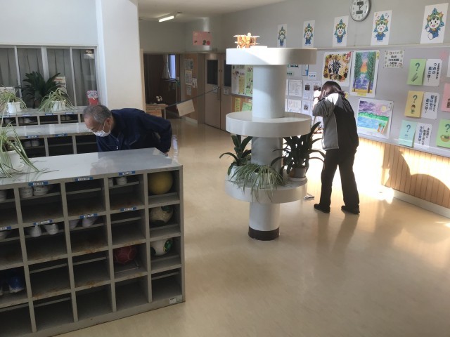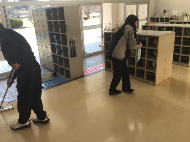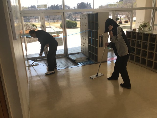 児童が下校した時間に、ワックス掛けを行いました。養護教諭と用務員さんが協力して床を磨いてくれました。明日登校した子どもたちが、ピカピカになった廊下に気付いてくれたら嬉しいです。今週の金曜日にも行う予定です。