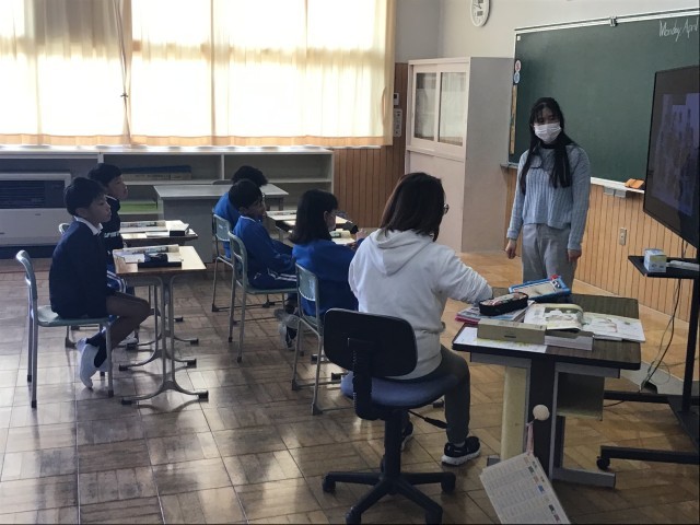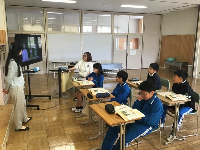 5年生の英語の様子です。画面を見ながら、状況にあった会話を考えています。しっかりと英語で表現していました。