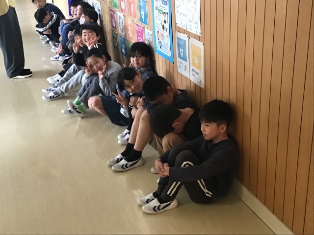 1、3、5年生対象に行った耳鼻科検診の様子です。3、5年生は静かに廊下で待っています。