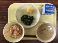ちりめんじゃこはマイワシやカタクチイワシ。それらを茹でた物が「しらす」さらに乾燥させたものが「ちりめんじゃこ」と言われているそうです。乾燥させ、堅くなっているので、今日はカミカミメニューです。