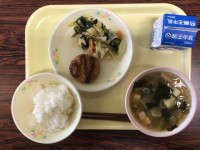 麦ご飯、納豆、牛乳、わかめのみそ汁、切り干し大根の炒め煮、はるか