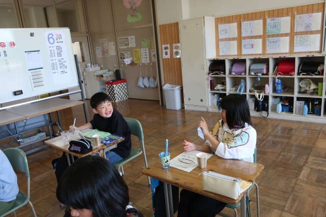 高学年の様子です。鏡をのぞいて隅々まで磨いています。