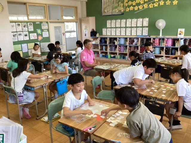 22日月曜日のベンジャミン先生との英語の授業では、学習道具が英語で書かれたカードを使って神経衰弱をしました。学習道具を英語で何というのか確認した後、神経衰弱バトル!英語を口ずさみながら、いくつもペアを見つけ、楽しみながら学習に取り組んでいました。