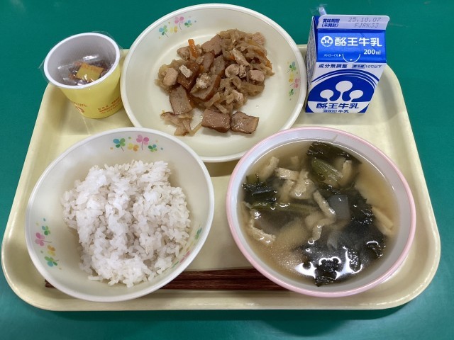 麦ごはん,牛乳,納豆,切り干し大根の含め煮,小松菜のみそ汁