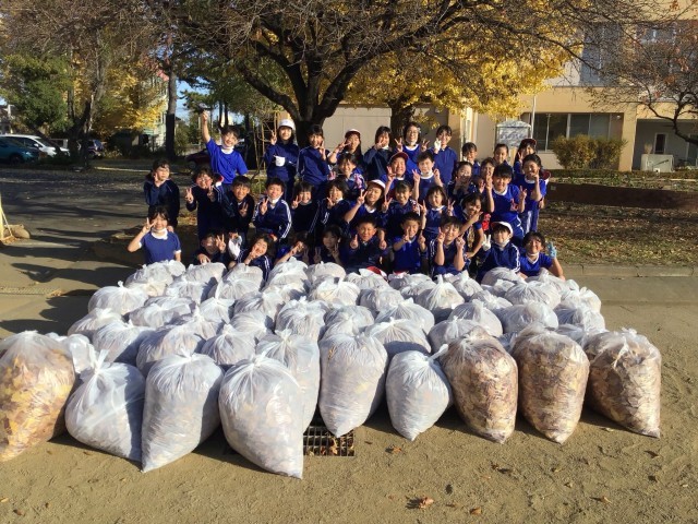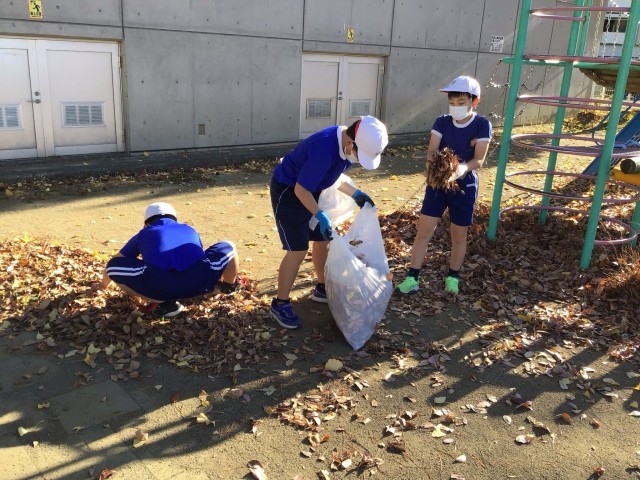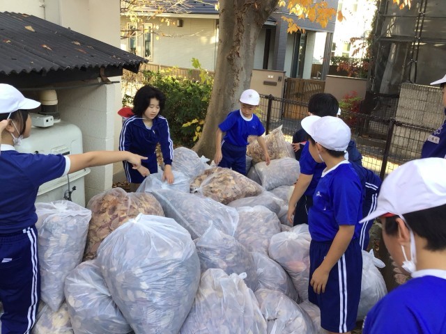 今日は、ボランティアで落ち葉拾いをしました。協力して落ち葉を集め、1時間でなんとゴミ袋64袋分の落ち葉を集めました!ゴミ袋の片付けまで、一生懸命な子どもたち。声を掛け合いながら、学校のために一生懸命働く姿が素晴らしかったです。