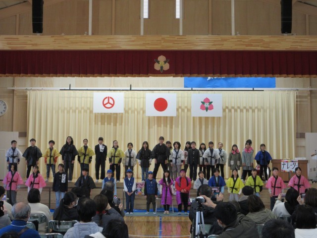 本日は、桃見のつどいをご参観いただきありがとうございました。「もっと動きを大きくしたほうがいいんじゃないかな」、「セリフを変えよう」とよりよい劇にするために工夫をしながら練習に取り組んできました。本番前には、緊張でドキドキの子どもたちでしたが、練習の成果を発揮し、笑顔で発表を終えることができました。がんばった!4年生!!