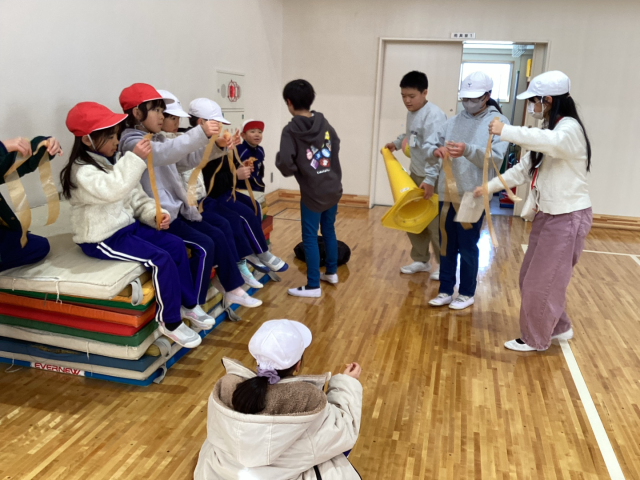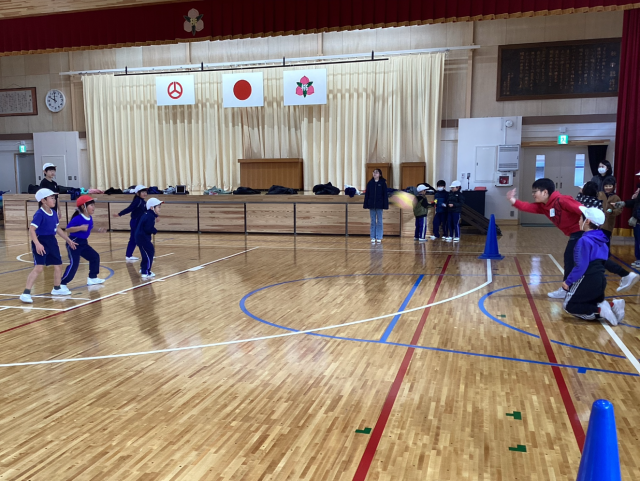 国語の話し合いの学習で、「1年生となかよく遊ぶ」計画を立てました。どんな遊びだといっしょに遊べるか、安全に遊べるか、ルールは適切かなど、いろいろなことを考えて決めていきました。いっしょに遊ぶ中で、みんなが楽しめるように積極的に声をかけたり、臨機応変に修正を加えたりしながら楽しく遊ぶことができました。うまく進められるか緊張もあったようですが、笑顔で遊ぶ1年生の姿を見て、6年生もいっしょに楽しむことができました。卒業まで3か月余りですが、これからもなかよく過ごせるといいなと思います。