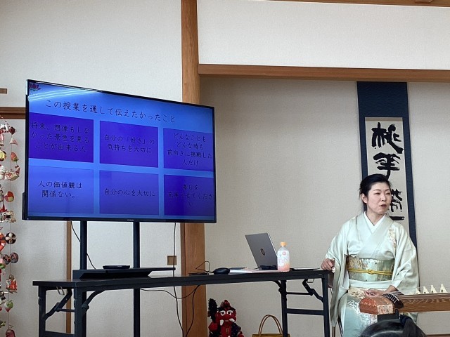 箏を見たり、触ったりすることが初めてというお友達がほとんどでしたが、自分の順番が来ると喜びを感じなが熱心に練習することができました。そのため、先生から全員合格をもらうことができました。また講師の先生からは、「どんなことも前向きに挑戦すること」「自分の好きの気持ちを大切にする」など、これからの人生を豊かにする秘訣も教えていただくことができました。大変貴重な時間となりました。