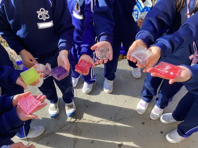生活科では、カラフル氷を作りました。