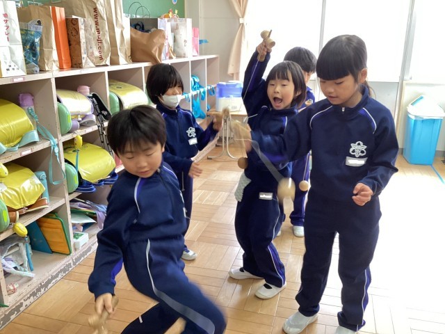 けん玉、おはじき、たこ、こま、福笑い、カルタなどの昔遊びにも挑戦中です!