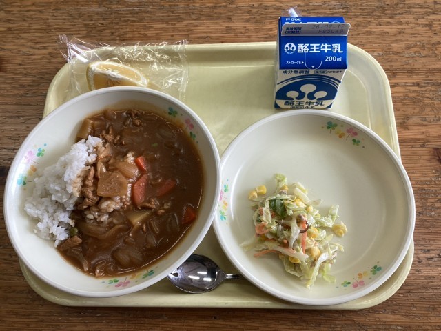 ハヤシライス,牛乳,コーンサラダ,はるか