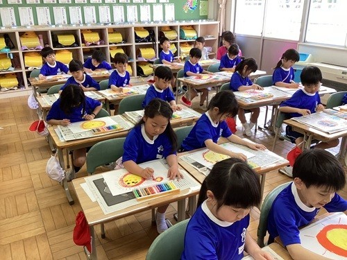 今日の図画工作科のお勉強は「わたしの おひさま」です。