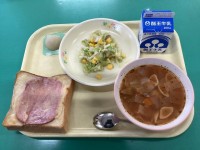 ごはん,牛乳,鮭のちゃんちゃん焼き,うの花いり,なめこ汁