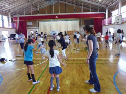 後半では、巨大なスーパーボールを連結させた特別な「ぶっとびロケット」を代表児童が飛ばしました。なかなか、上手に飛ばせませんでしたが、中には、天井まで届くほど高く飛ばすことができた子もおりました。