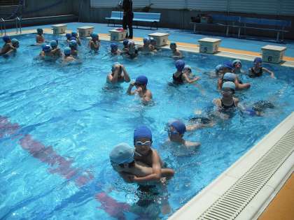「プール入れるかな〜?」と空とにらめっこしていましたが、天気もよくなり本日「初泳ぎの会」を行いました。5年生と一緒に流れるプールをしたり、おぶってもらったりしながら楽しい初泳ぎの会でした。